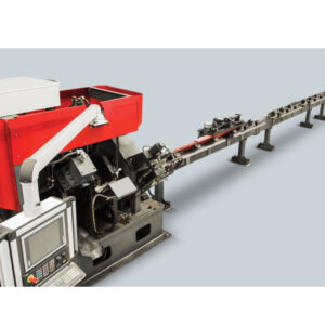 Linha para processamento de cantoneira com marcação, furação e corte.